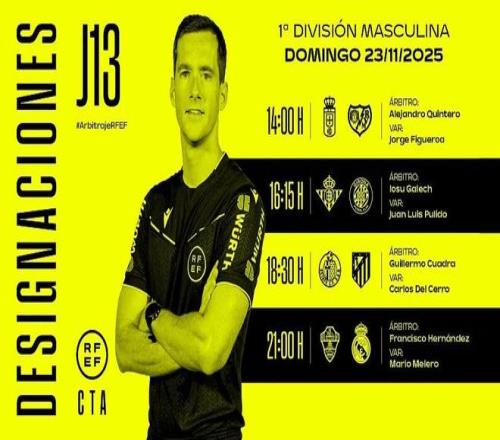 西班牙足协官方公布了周日西甲4场比赛的裁判安排,弗朗西斯科-埃尔南德斯将执法皇马客战埃尔切。
